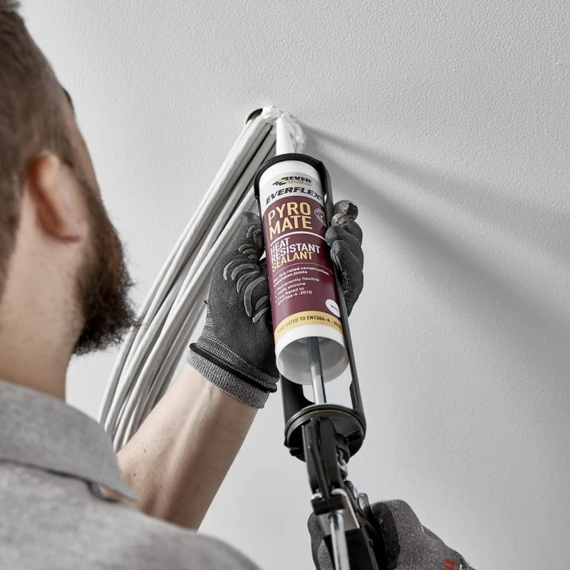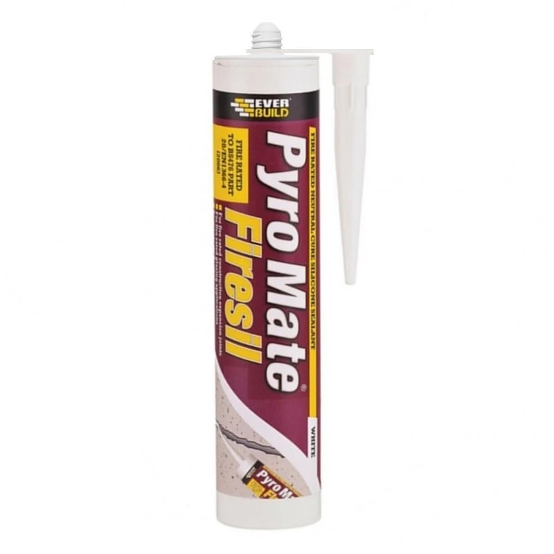 Everbuild Everflex Pyromate a White neutral cure elastic silicone sealant that conforms to the standards for fire retardancy